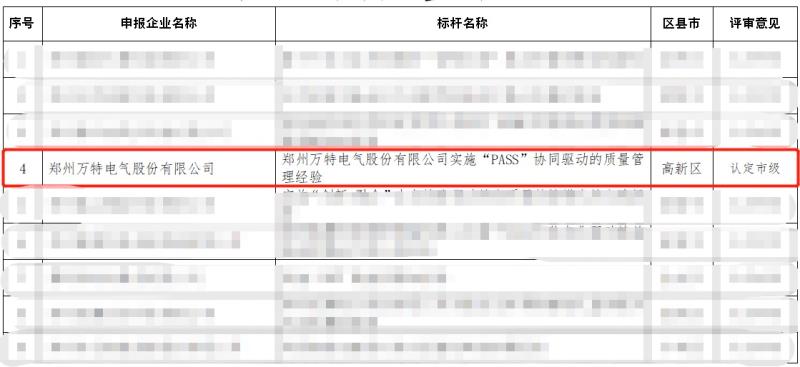 5月22日,鄭州市工信局公示,認(rèn)定我公司實(shí)施“PASS”協(xié)同驅(qū)動的質(zhì)量管理經(jīng)驗(yàn)為2023年鄭州市質(zhì)量標(biāo)桿企業(yè),鄭州市此次共認(rèn)定20家企業(yè),高新區(qū)僅有兩家企業(yè)通過。