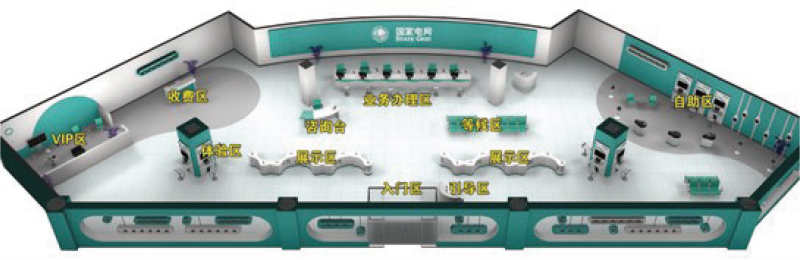 本項目應用VR 虛擬現實技術,開發(fā)互動營業(yè)廳虛擬現實場景應用,可實現業(yè)務辦理、故障報修、咨詢服務、電 費繳納等立體演示功能。